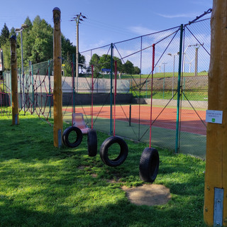 Na začátku lázeňské stezky potkáte velké dětské hřiště, kousek opodál další provazové pro větší děti, a navíc ještě pár skluzavek k tomu.