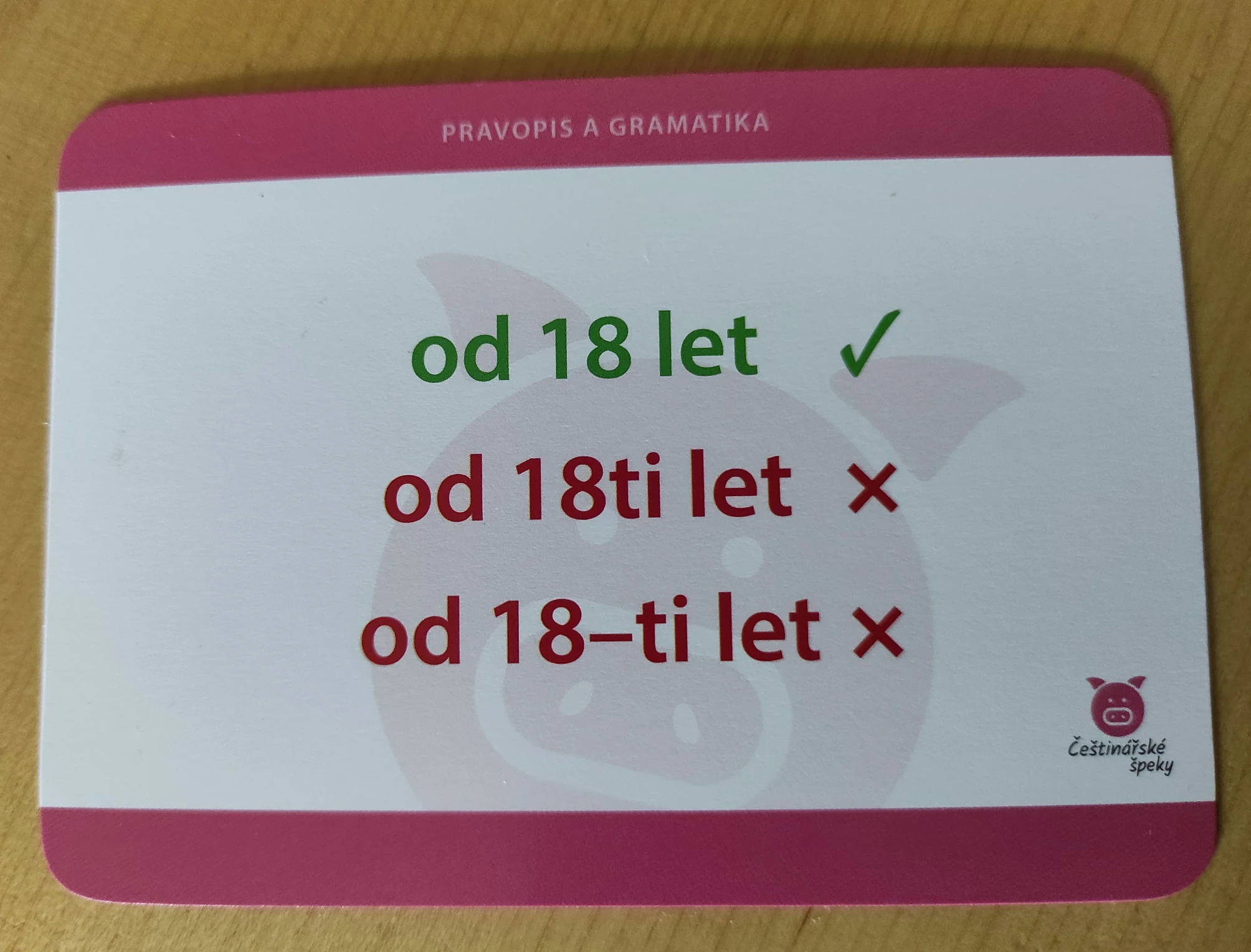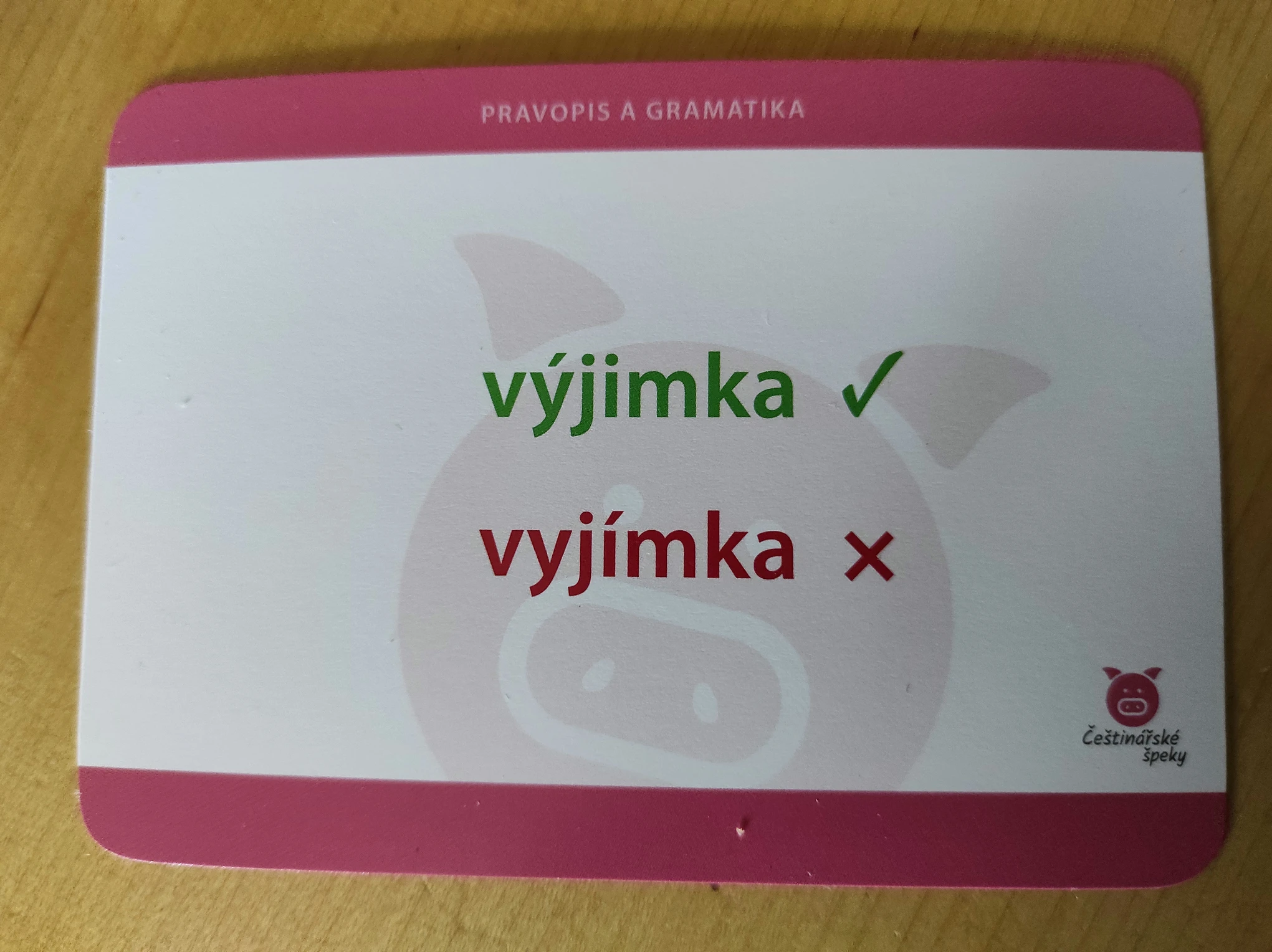Z jedné strany kartičky vždy najdete přehledně vyobrazeny češtinářský problém se zvýrazněnou správnou odpovědí. Na druhé straně pak bližší odůvodnění.